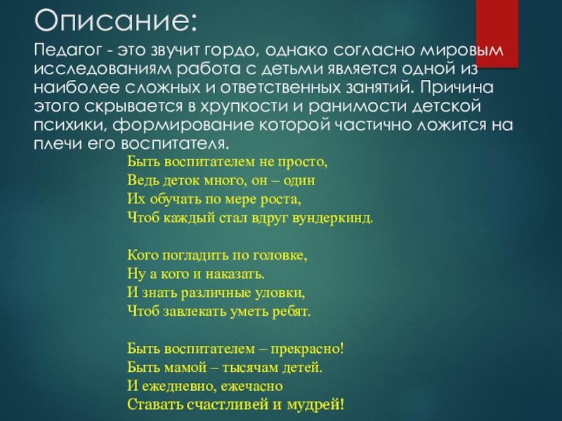 Быть воспитателем не просто,