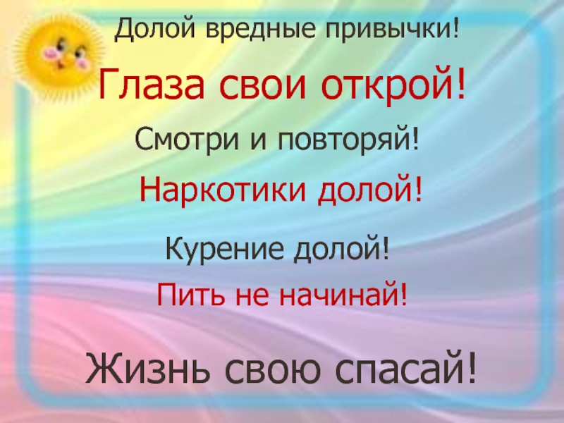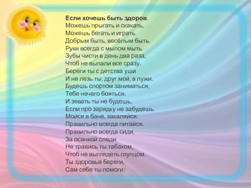 Углублять знания детей о факторах , влияющих на состояние своего здоровья