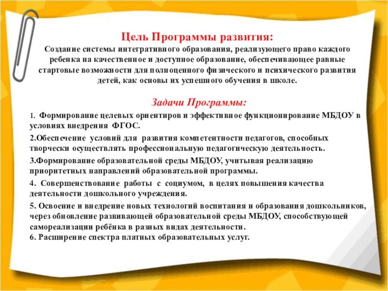 5. Освоение и внедрение новых технологий воспитания и образования дошкольников, через обновление развивающей образовательной среды МБДОУ, способствующей самореализации ребёнка в разных видах деятельности.
