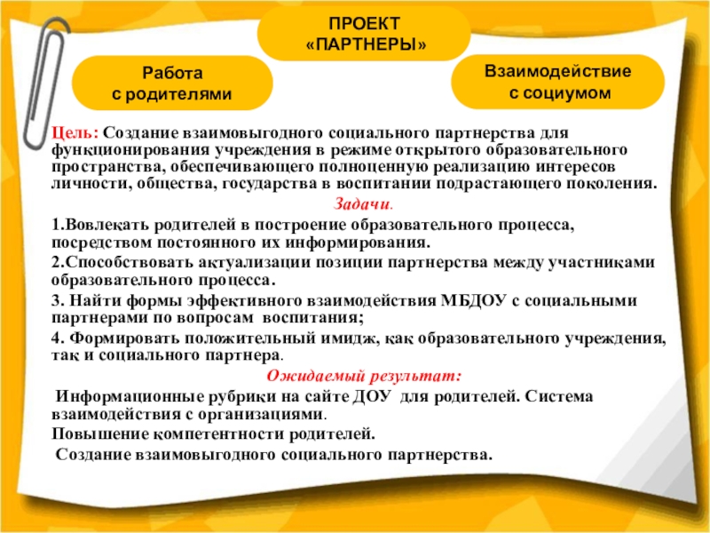 4. Совершенствование работы с социумом, в целях повышения качества деятельности дошкольного учреждения.