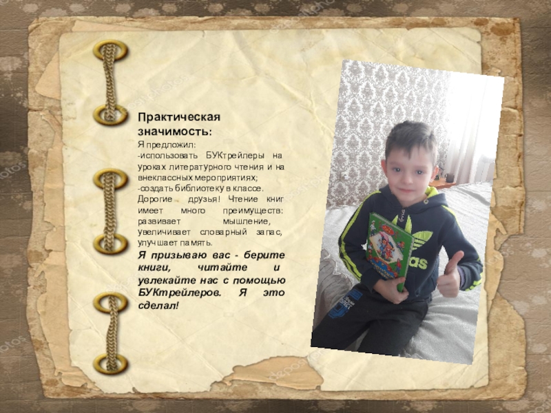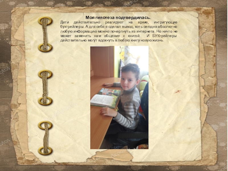 Гипотеза: Я предположил, что с помощью созданного мной буктрейлера я сумею привлечь своих одноклассников к чтению, а так же вызову желание прочитать свою любимую книгу.