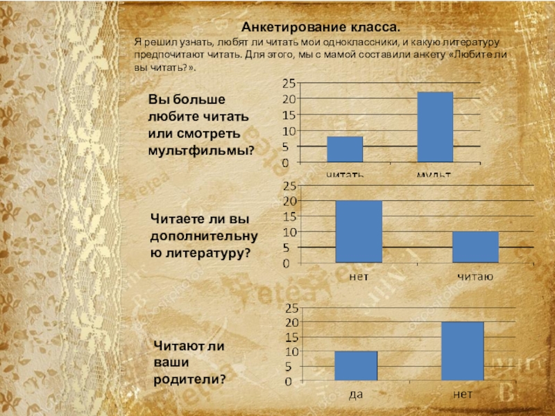 Я решил узнать, любят ли читать мои одноклассники, и какую литературу предпочитают читать. Для этого, мы с мамой составили анкету «Любите ли вы читать?».