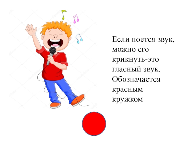 Слайд 10Если поется звук, можно его крикнуть-это гласный звук.Обозначается красным кружком