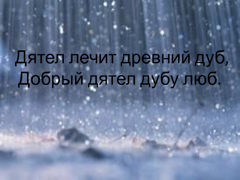 Слайд 12 Дятел лечит древний дуб,  Добрый дятел дубу люб.