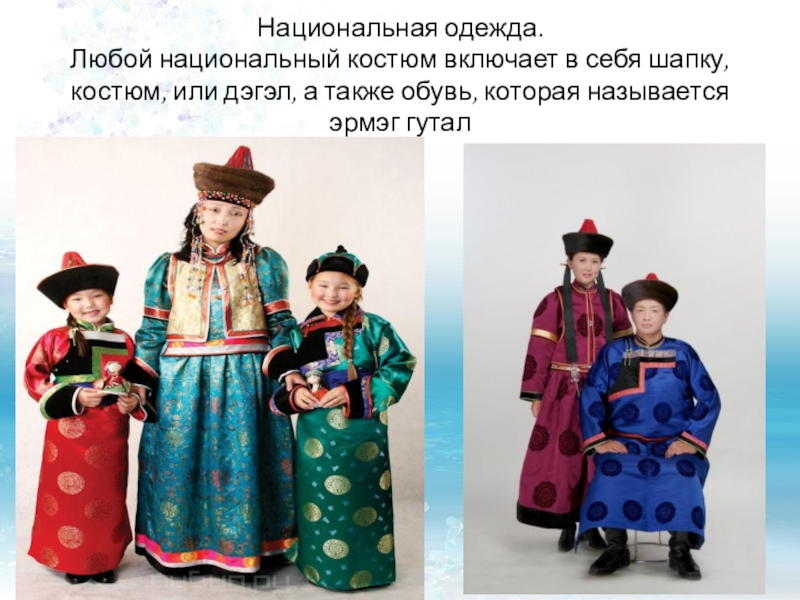 Любой национальный костюм включает в себя шапку, костюм, или дэгэл,