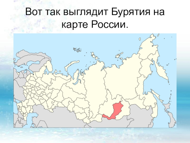 Слайд 2Вот так выглядит Бурятия на карте России.
