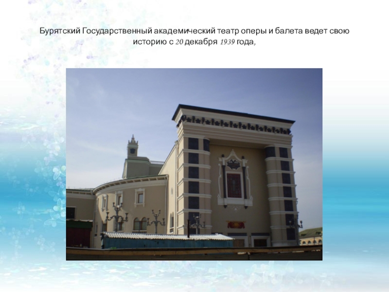 Слайд 30Бурятский Государственный академический театр оперы и балета ведет свою историю с