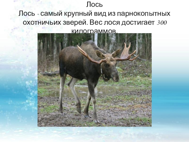 Лось - самый крупный вид из парнокопытных охотничьих зверей. Вес лося