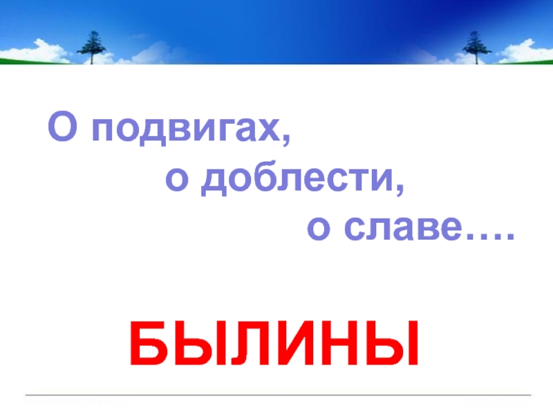 О подвигах, о доблести,           о славе….БЫЛИНЫ