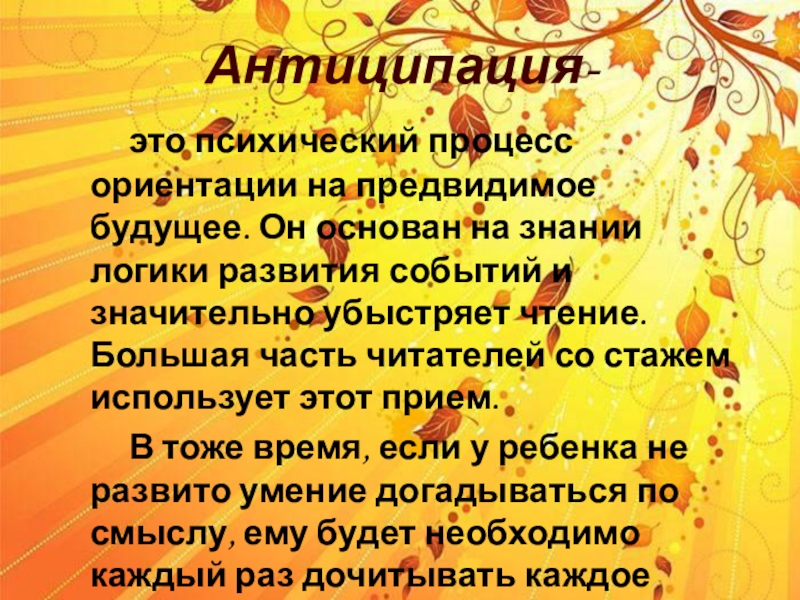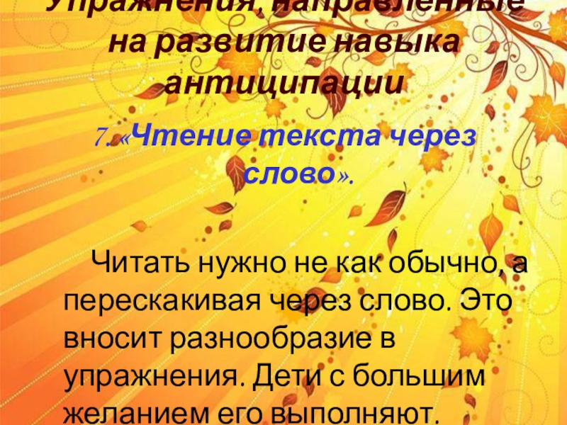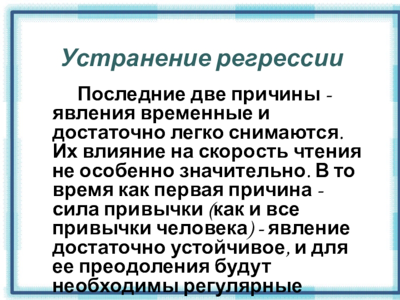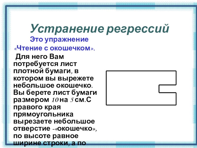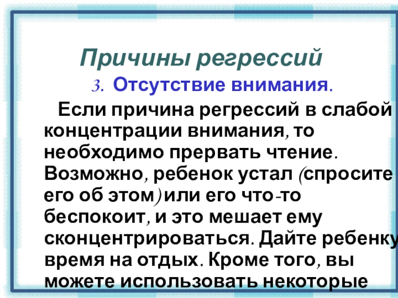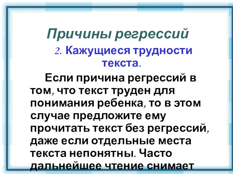 для понимания ребенка, то в этом случае предложите ему прочитать текст без регрессий, даже если отдельные места текста непонятны. Часто дальнейшее чтение снимает возможные вопросы и делает возвраты ненужными.