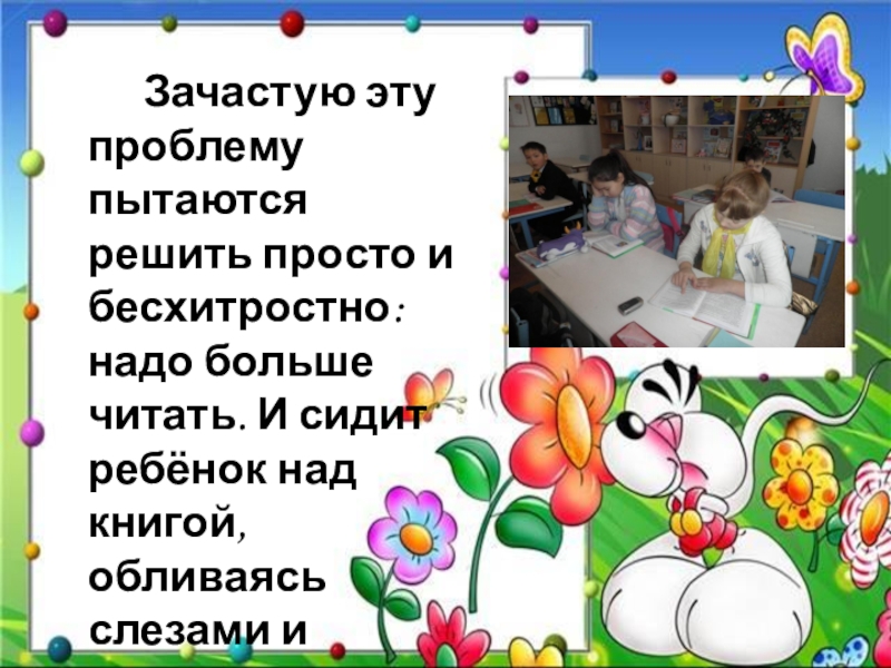 Слайд 9 Зачастую эту проблему пытаются решить просто и бесхитростно: надо больше читать.