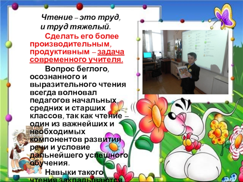 Вопрос беглого, осознанного и выразительного чтения всегда волновал педагогов начальных, средних и старших классов, так как чтение – один из важнейших и необходимых компонентов развития речи и условие дальнейшего успешного обучения.