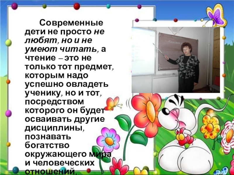 а чтение – это не только тот предмет, которым надо успешно овладеть ученику, но и тот, посредством которого он будет осваивать другие дисциплины, познавать богатство окружающего мира и человеческих отношений, формировать в себе собственное отношение к действительности.