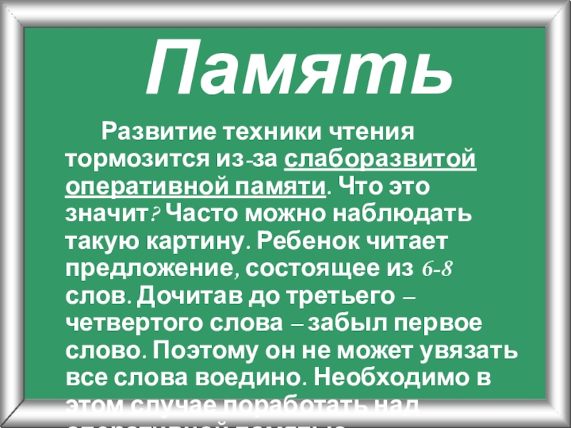 Развитие техники чтения тормозится из-за слаборазвитой оперативной памяти. Что это значит?
