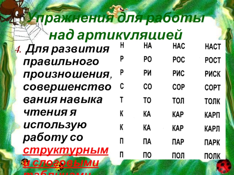 их со звуками и произносить их в указанном порядке в виде слогов, слов и предложений