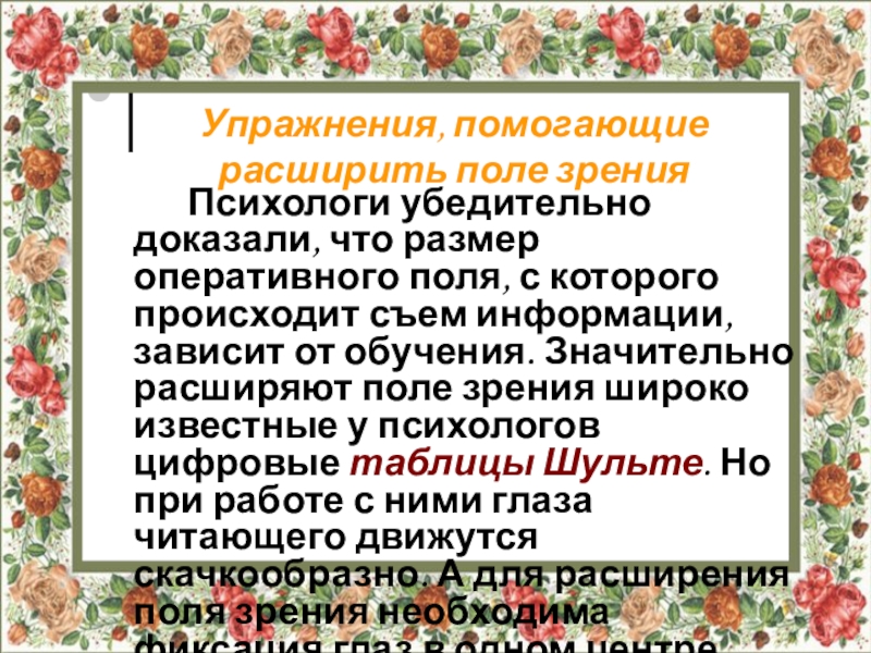 Их влияние на скорость чтения не особенно значительно. В то время как первая причина - сила привычки (как и все привычки человека) - явление достаточно устойчивое, и для ее преодоления будут необходимы регулярные занятия с использованием специального упражнения.