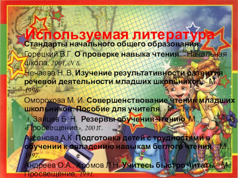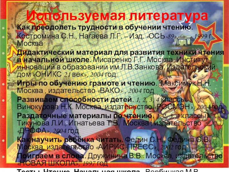 3. Зайцев Б. Н. Резервы обучения чтению. М., «Просвещение», 2001г.