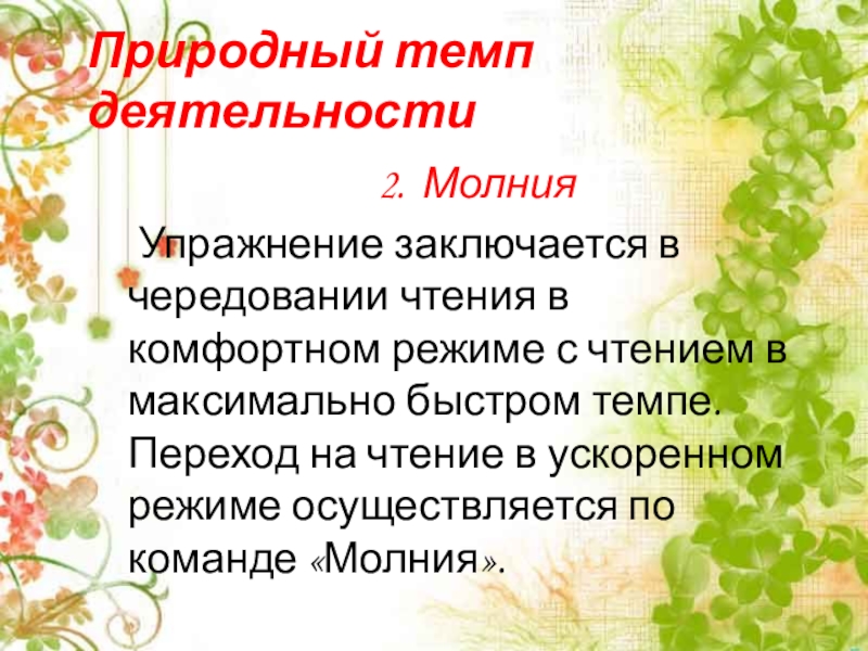 чтением в максимально быстром темпе. Переход на чтение в ускоренном режиме осуществляется по команде «Молния».