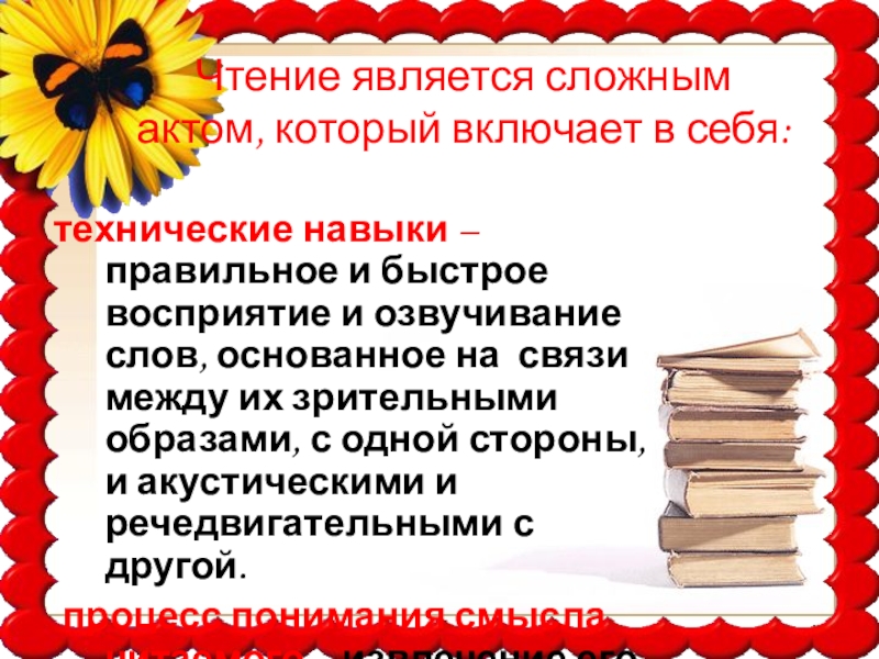 Слайд 11Чтение является сложным актом, который включает в себя: