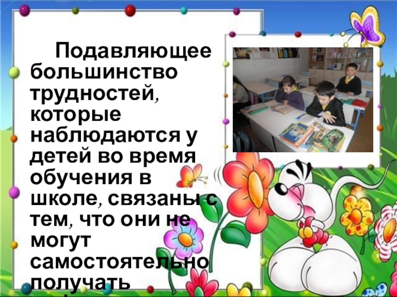Слайд 5 Подавляющее большинство трудностей, которые наблюдаются у детей во время обучения в
