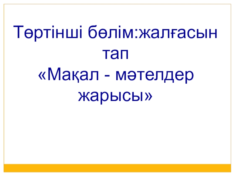 Төртінші бөлім:жалғасын тап «Мақал - мәтелдер жарысы»