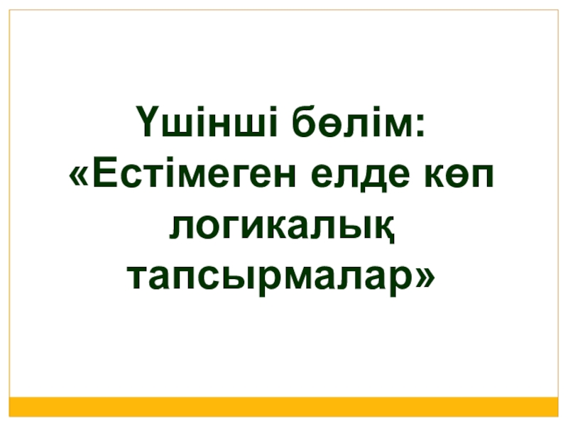 Слайд 9Үшінші бөлім: «Естімеген елде көп логикалық тапсырмалар»