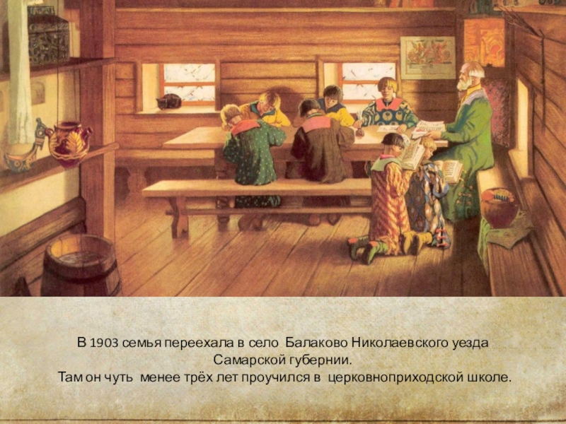Слайд 4В 1903 семья переехала в село  Балаково Николаевского уезда  Самарской губернии.