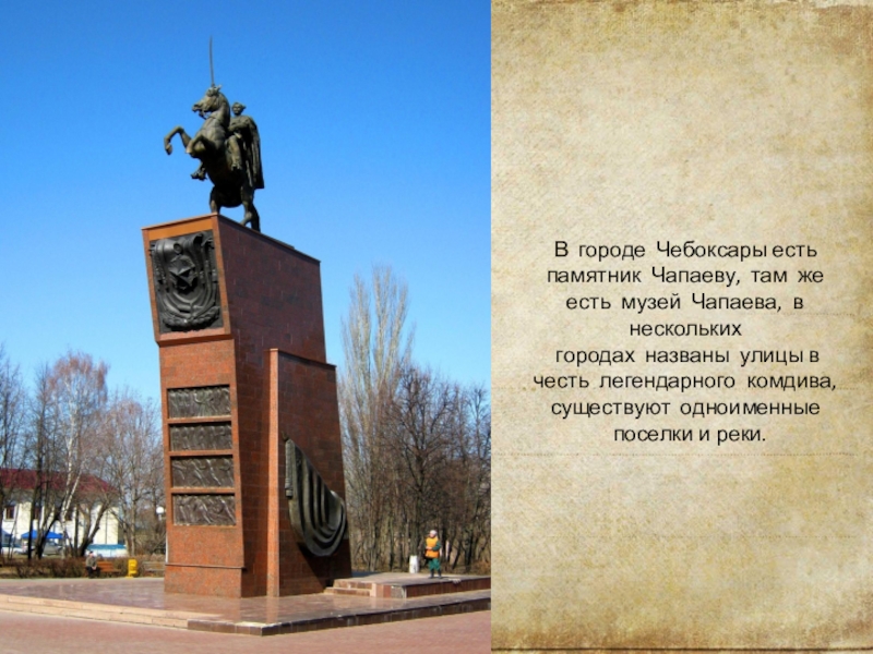 Слайд 20В  городе  Чебоксары есть памятник  Чапаеву,  там  же  есть  музей  Чапаева,