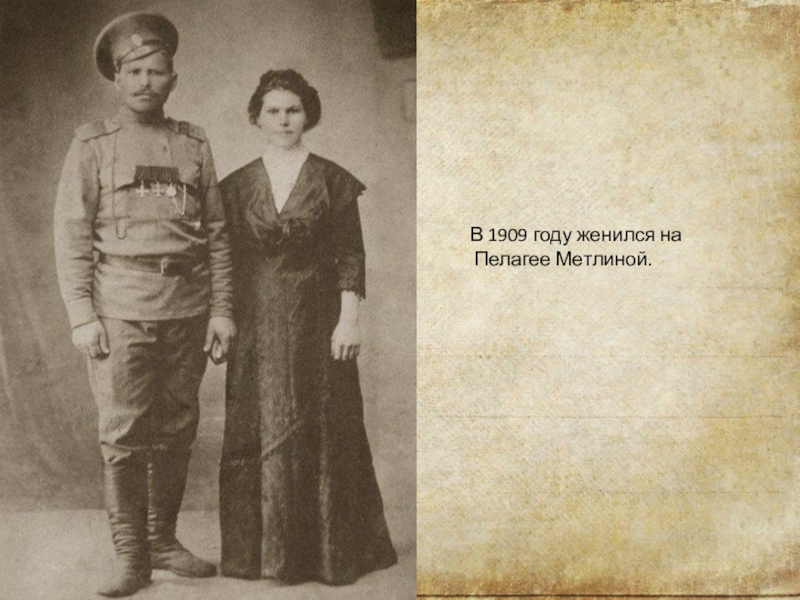 В 1909 году женился на  Пелагее Метлиной.