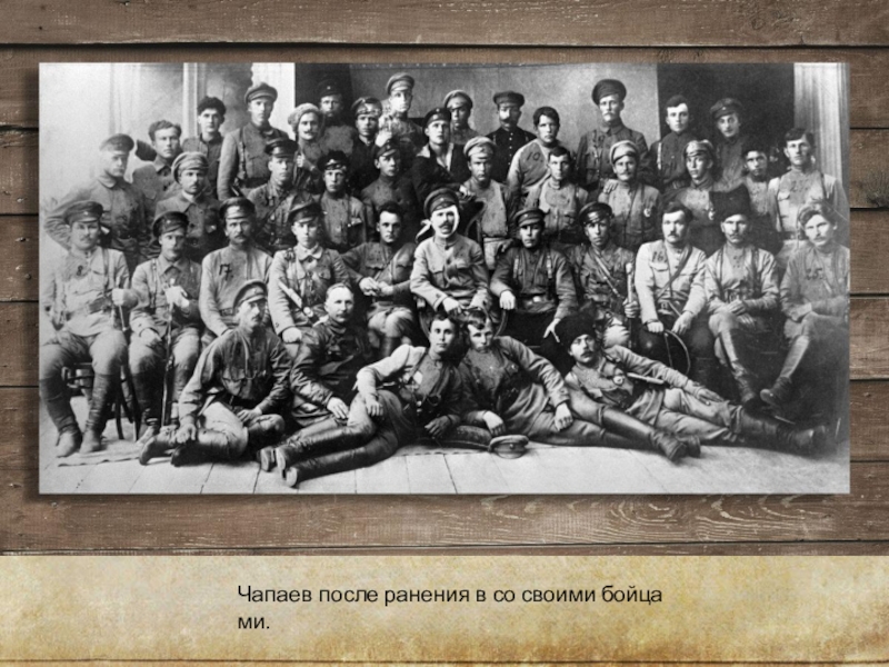 Слайд 16Чапаев после ранения в со своими бойцами.