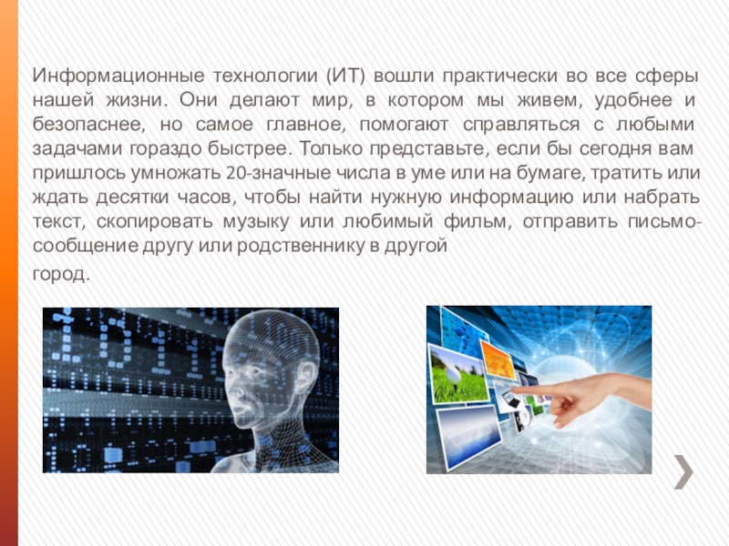 Информационные технологии (ИТ) вошли практически во все сферы нашей жизни. Они
