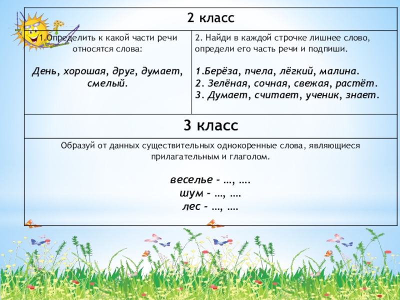 Презентация, доклад Части речи к сценарию урока русского языка во 2-3 классе