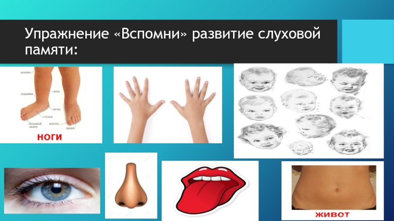 Слайд 3Упражнение «Вспомни» развитие слуховой памяти: