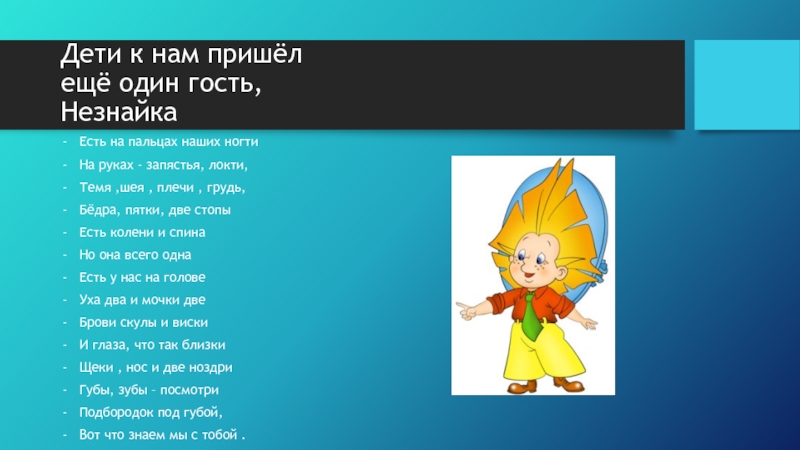Слайд 8Дети к нам пришёл ещё один гость, Незнайка