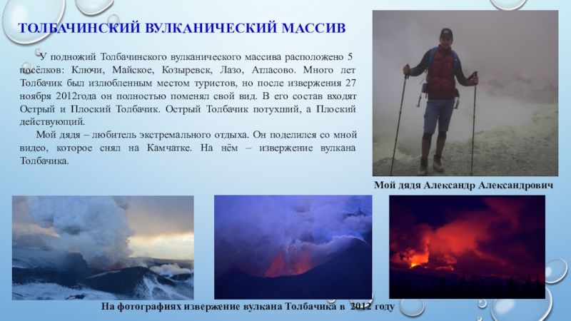На фотографиях извержение вулкана Толбачика в 2012 году