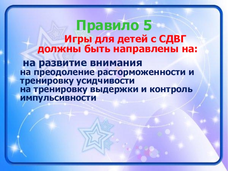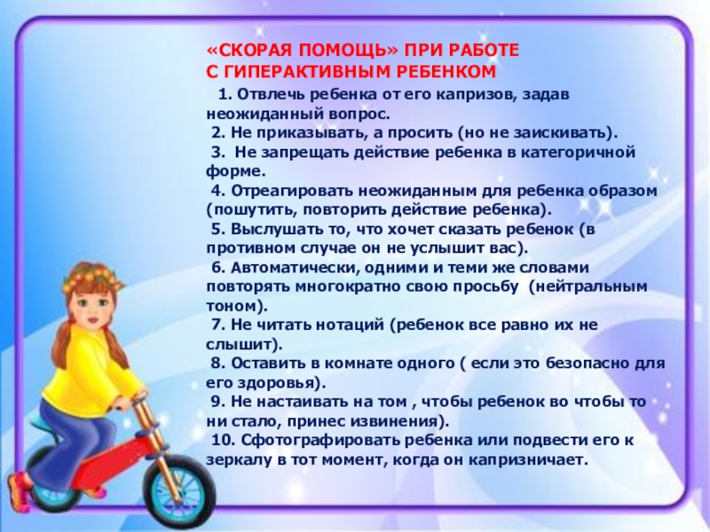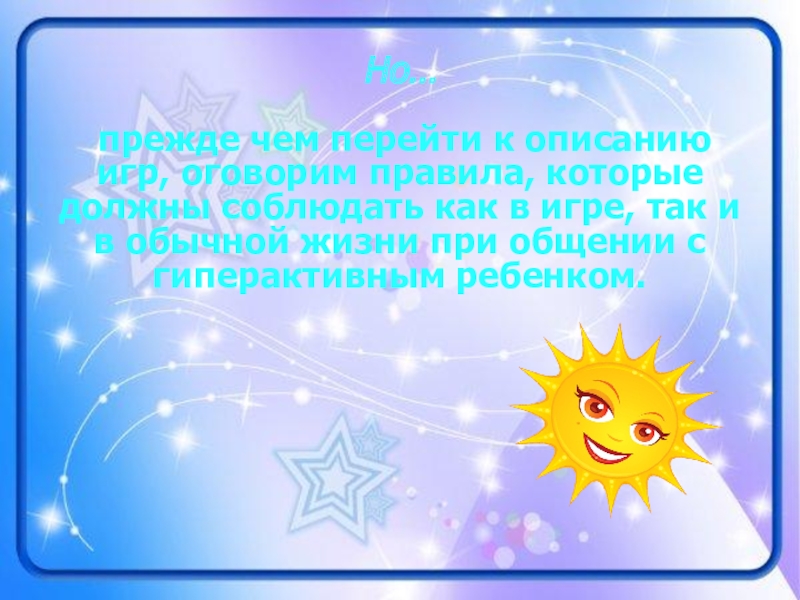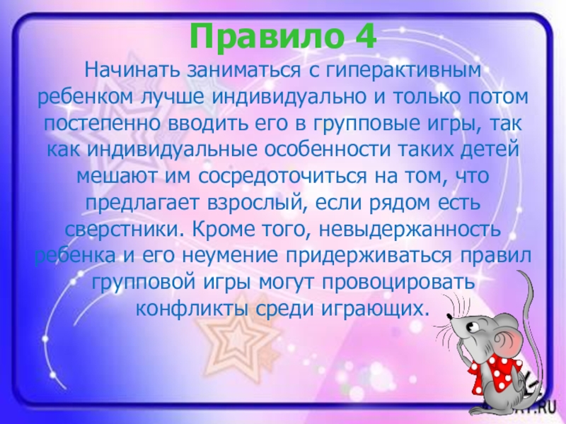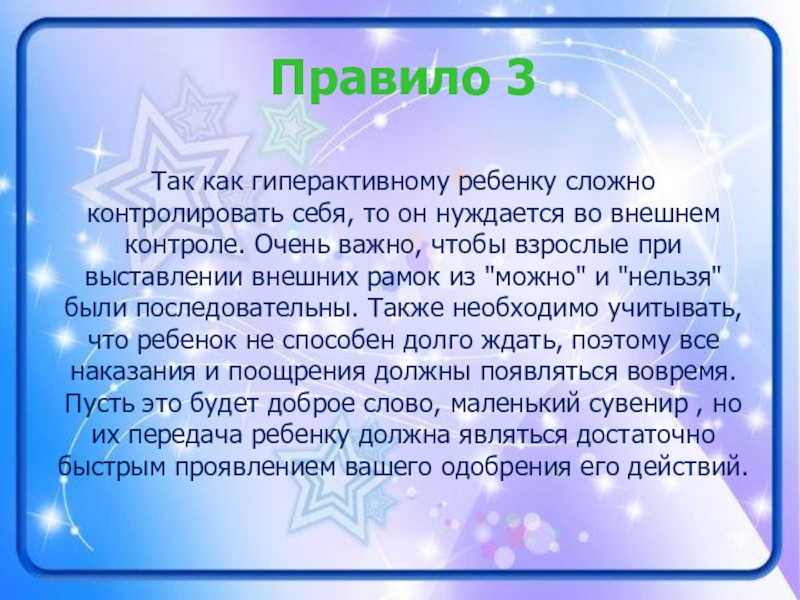 соблюдать как в игре, так и в обычной жизни при общении с гиперактивным ребенком.