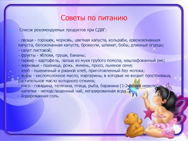 А вот длительные прогулки на свежем воздухе, физические упражнения, бег очень полезны. Они позволяют сбросить избыток энергии. Но опять-таки в меру, чтобы ребенок не устал. Вообще надо следить и оберегать детей с СДВГ от переутомления, так как переутомление приводит к снижению самоконтроля и нарастанию гиперактивности.