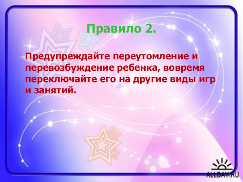 Предупреждайте переутомление и перевозбуждение ребенка, вовремя переключайте его на другие