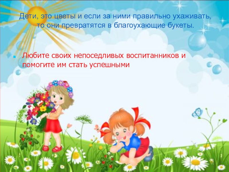 Слайд 35Дети, это цветы и если за ними правильно ухаживать, то они