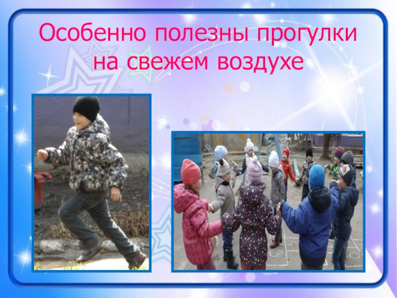 Слайд 32Особенно полезны прогулки на свежем воздухе