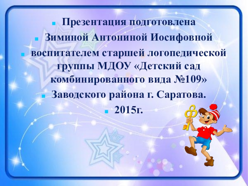 воспитателем старшей логопедической группы МДОУ «Детский сад комбинированного