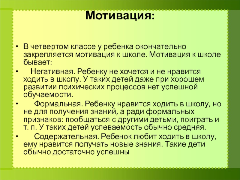 В четвертом классе у ребенка окончательно закрепляется мотивация к школе. Мотивация