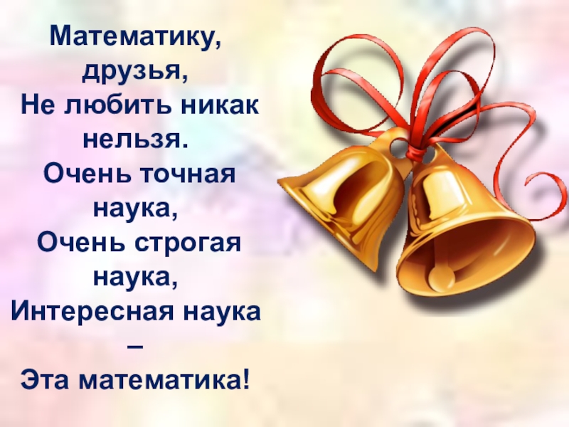 Математику, друзья, Не любить никак нельзя. Очень точная наука, Очень строгая наука, Интересная наука – Эта математика!