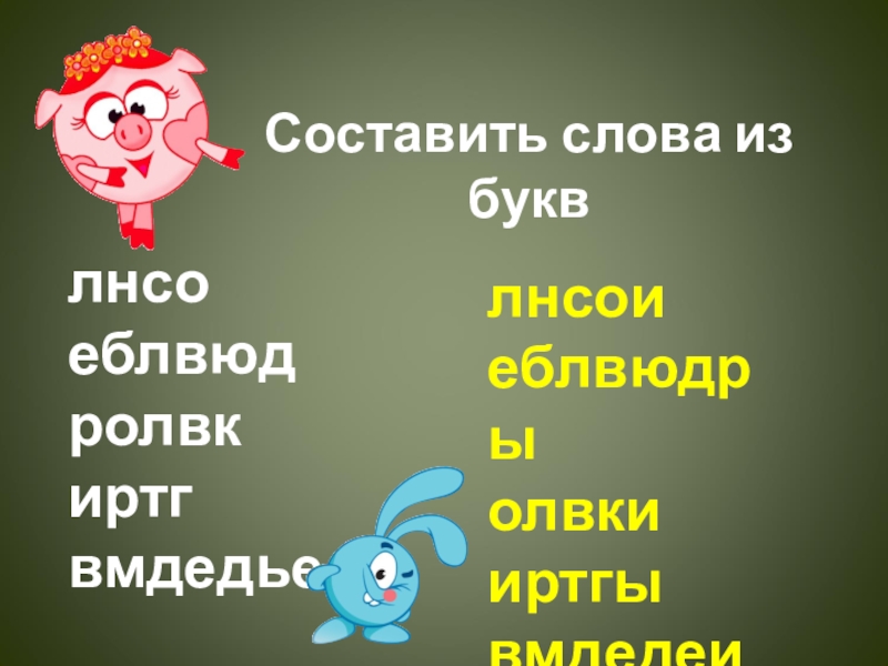 лнсоеблвюдролвкиртгвмдедьелнсоиеблвюдрыолвкииртгывмдедеиСоставить слова из букв