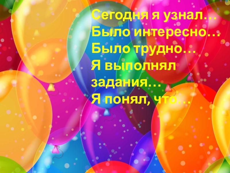 Сегодня я узнал…Было интересно…Было трудно…Я выполнял задания…Я понял, что…