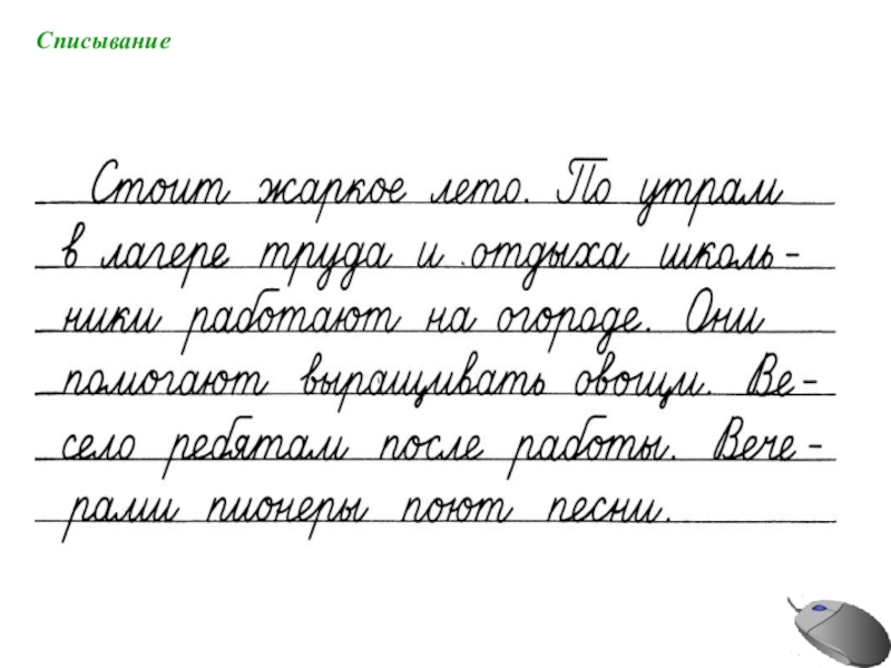списывание в широкую линию
