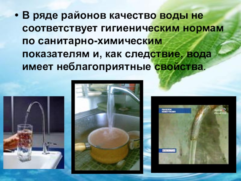 Слайд 16В ряде районов качество воды не соответствует гигиеническим нормам по санитарно-химическим