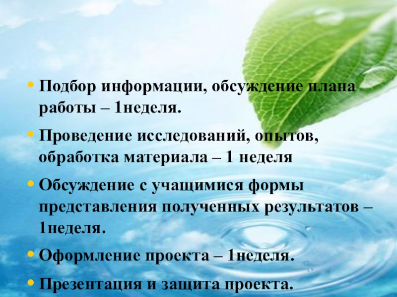 Обсуждение с учащимися формы представления полученных результатов – 1неделя.