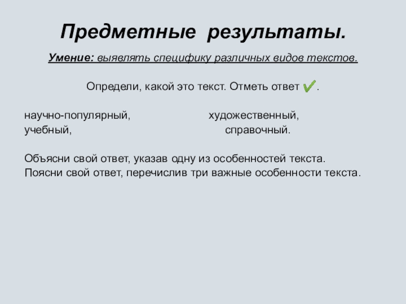 Умение: выявлять специфику различных видов текстов.