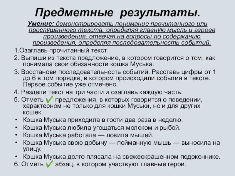 2. Выпиши из текста предложение, в котором говорится о том, как понимала свои обязанности кошка Муська.